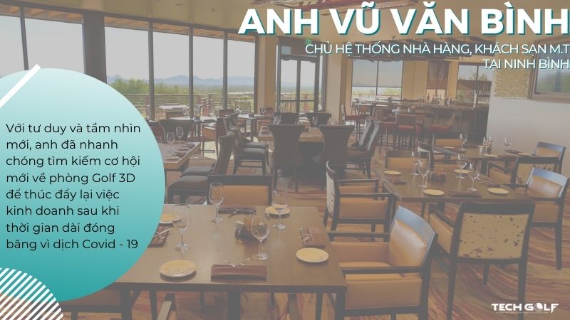 “Tôi nhớ vào cuối năm 2019, một đoàn khách nước ngoài chọn Nhà hàng – khách sạn của tôi là nơi nghỉ và trải nghiệm du lịch tại Ninh Bình. Mặc dù mục đích du lịch của họ là khám phá thiên nhiên, trải nghiệm thực tế, thế nhưng họ lại hỏi tôi biết chỗ nào có kinh doanh phòng Golf 3D để golfer giao lưu không?