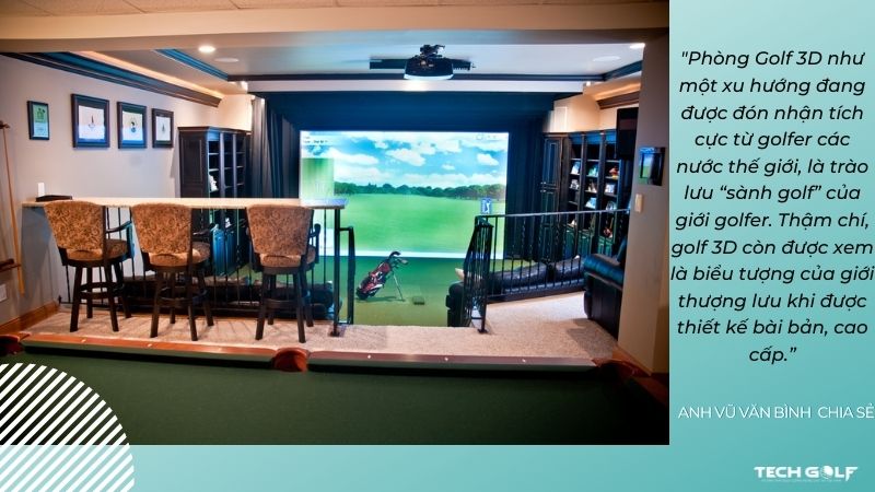 “Không sai khi tin tưởng xu hướng Golf 3D và tin tưởng bên TechGolf em, anh chỉ tiếc là mình đã dời dự án nhiều lần và triển khai khá trễ so với dự định của anh do tình hình dịch, nhưng có thể cũng vì thế mà giờ đây khi mọi người đã bắt đầu có tư duy sống chung với dịch nên phòng Golf 3D của anh mới trở nên thành công như vậy. Thiên thời – địa lợi – nhân hòa là chưa đủ để dự án này phát triển, đón đầu xu hướng, sự quyết đoán và lựa chọn đơn vị uy tín, chuyên nghiệp cùng hợp tác cũng là một trong nhiều yếu tố dẫn đến sự thành công này.”
