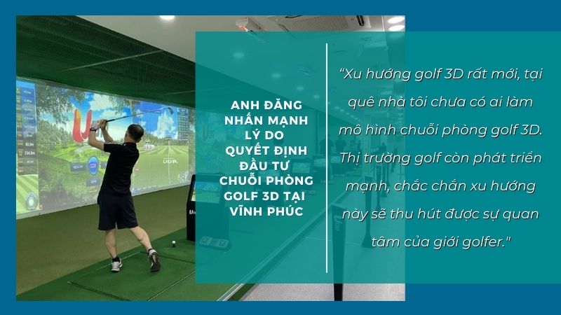 Nhờ có anh Đăng mà phong trào golf Vĩnh Phúc lại càng phát triển. Ngày đó ai cũng nói ở Vĩnh Phúc nhiều sân golf thì lắp phòng này làm gì có khách. Nhưng anh đã nhìn ra tiềm năng, nay thi việc tập luyện không thể thiếu phòng 3D