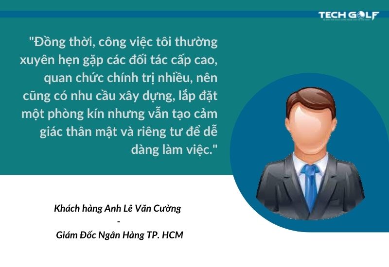 Nhưng thời gian để tôi thoải mái lên sân 3 lần trong tuần thì quá khó, có tuần bận rộn tôi chẳng có cơ hội cầm gậy chứ nói gì đến ra sân golf. Đồng thời, công việc tôi thường xuyên hẹn gặp các đối tác, khách hàng sang trọng nên cũng có nhu cầu xây dựng, lắp đặt một phòng kín nhưng vẫn tạo cảm giác thân mật và riêng tư để dễ dàng làm việc.