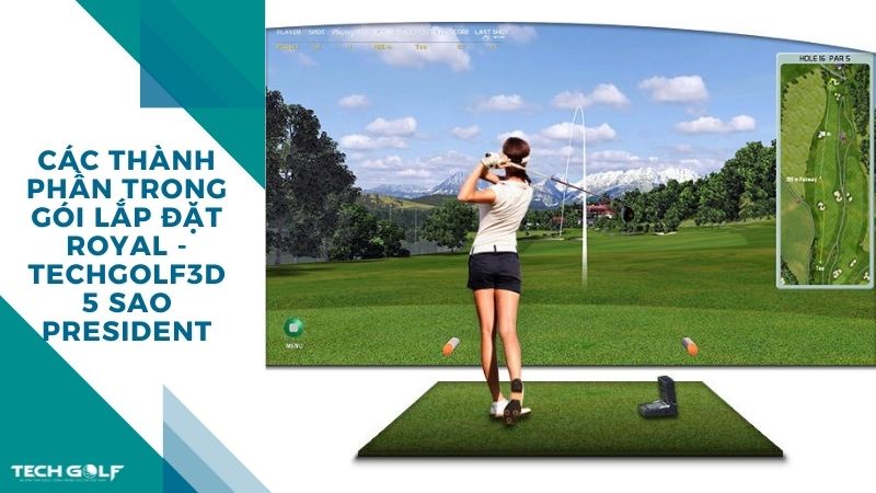 Với tổng chi phí 1,32 tỷ đồng, TECHGOLF đã trang bị phòng President toàn bộ các thiết bị được nhập khẩu chính hãng 100% từ Hàn Quốc. Được thực hiện bởi đội ngũ kỹ sư cố vấn chuyên sâu giúp mang tới hệ thống phòng golf 3D hiện đại, hoàn hảo và mang tính các nhân hoá dành cho đối tượng golfer cao cấp. Cụ thể, gói lắp đặt bao gồm: