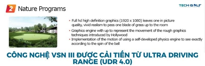 UDR 4.0 vốn được mệnh danh là công nghệ golf 3D “ảo mà không ảo” nhờ sở hữu hệ thống đồ họa sắc nét, tỉ lệ chính xác so với sân thực tế tới 95% cùng cảm giác chân thực tới từng chi tiết nhỏ (tiếng gió, tiếng cỏ,…).