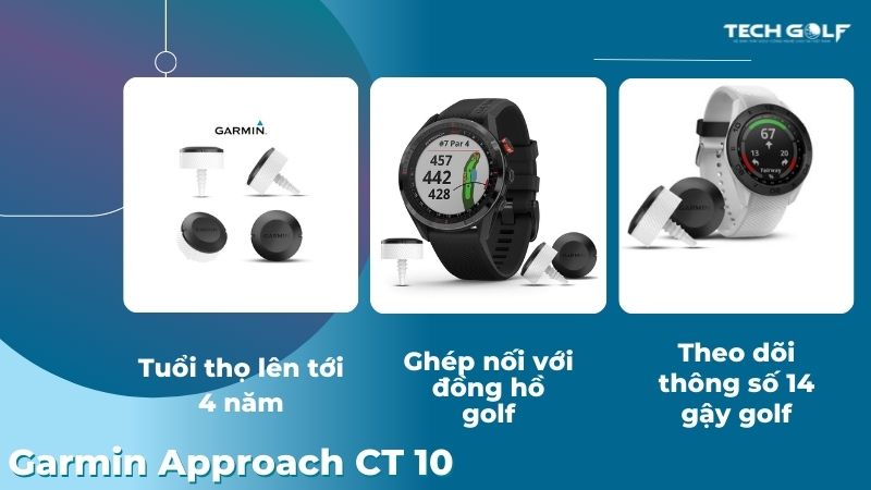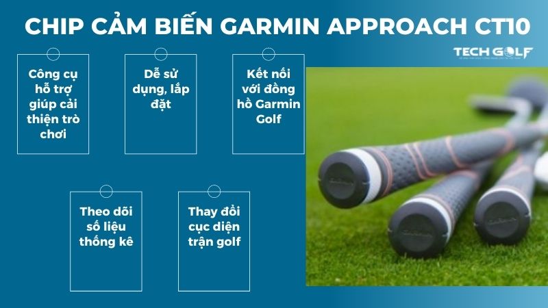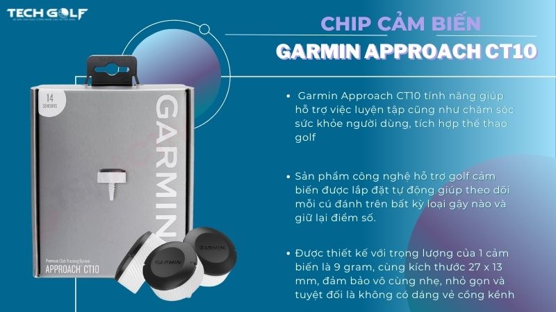 Với cảm biến Approach CT10 được gắn vào đầu của gậy golf, người chơi biết mỗi cú đánh bóng sẽ đưa bóng đi được bao xa, từ đó có thể ước lượng được nên chọn loại gậy golf nào phù hợp và thực hiện cú đánh với lực đánh ra sao. Đặc biệt, chip cảm biến công nghệ hỗ trợ golf Garmin Approach CT10 có thể theo dõi tất cả 14 gậy trong túi nên được các golfer ưa chuộng.