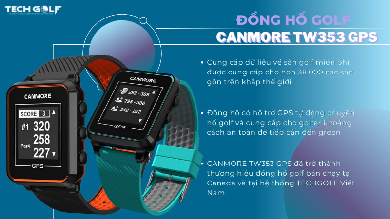Với những lợi thế lớn, CANMORE đã trở thành thương hiệu đồng hồ golf bán chạy tại Canada và tại hệ thống TECHGOLF Việt Nam. Trong đó, đáng chú ý phải kể tới mẫu đồng hồ Golf CANMORE TW353 GPS. Với sự cải tiến vượt trội, CANMORE TW353 GPS được xem là trợ thủ đắc lực giúp các golfer dễ dàng chinh phục 18 hố golf.