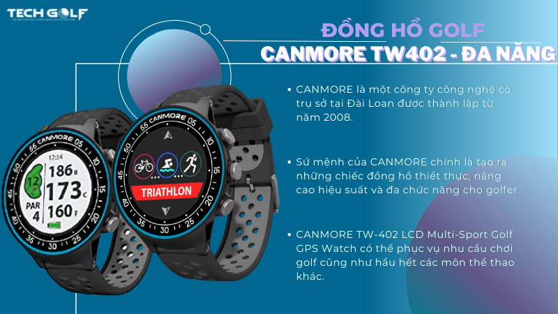 Đồng hồ CANMORE TW-402 LCD Multi-Sport Golf GPS Watch sẽ cung cấp cho người chơi khoảng cách đến hố. Đáng chú ý, có một số hố sẽ thu thập dữ liệu về sự chuyển động của cú swing của khi golfer thực sự tập trung vào chơi.