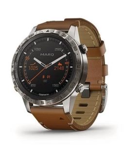 Được thiết kế với vẻ ngoài tinh xảo nhưng MARQ Captain vẫn đảm bảo độ bền và các tính năng đặc trưng thường thấy ở những sản phẩm có cùng thương hiệu. Để hoàn thiện bộ khung của MARQ Captain, thương hiệu Garmin đã sử dụng chất liệu titan và phủ lên màn hình một lớp kính sapphire “đắt giá” nhằm gia tăng khả năng chống trầy xước. Phần quai đeo của sản phẩm đảm bảo chắc chắn mà vẫn cho thấy cảm giác thoải mái trong quá trình tập luyện thể thao. Ngoài ra, màn hình MIP có kích thước 1.2 inch cùng độ phân giải cao (240 x 240 pixels) giúp bạn đảm bảo chất lượng hiển thị rõ nét dù ở điều kiện trong nhà hay ngoài trời.