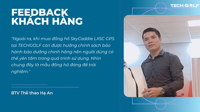Là người thường xuyên ghé qua hệ sinh thái TECHGOLF để lựa chọn các loại phụ kiện chơi golf, golfer Thành Trung sau khi sử dụng SkyCaddie LX5C GPS cho biết: “Thử nghiệm thử nhiều loại đồng hồ nhưng có lẽ SkyCaddie LX5C GPS là mẫu đồng hồ làm tôi ưng ý nhất. Chất lượng hình ảnh sắc nét, đồ hoạ chân thực và chỉ số đo khoảng cách cũng rất chuẩn. Chưa kể, mua hàng tại TECHGOLF còn nhận được mức giá khá hời cùng chính sách bảo hành chính hãng nên tôi khá yên tâm về chất lượng. Đúng là TECHGOLF không làm tôi thất vọng về dịch vụ và tư vấn nhiệt tình. Bác nào cần các sản phẩm về công nghệ golf, và các thiết bị hỗ trợ khi lên sân như máy đo khoảng cách, đồng hồ thông minh thì cứ yên tâm tìm tới TECHGOLF nhé.”