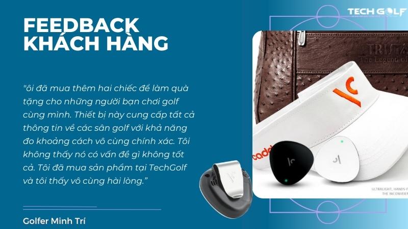 Golfer Minh Trí có chia sẻ: “Đây quả là một sản phẩm tuyệt vời. Việc giao hàng cũng cực kỳ nhanh, tôi mới đặt hôm trước vậy mà hôm sau đã có luôn rồi. Tôi đã mua thêm hai chiếc để làm quà tặng cho những người bạn chơi golf cùng mình. Thiết bị này cung cấp tất cả thông tin về các sân golf với khả năng đo khoảng cách vô cùng chính xác. Tôi không thấy nó có vấn đề gì không tốt cả. Tôi đã mua sản phẩm tại TechGolf và tôi thấy vô cùng hài lòng.”