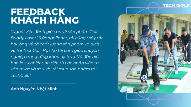 Bên cạnh chia sẻ trên, một người chơi golf khác anh Nguyễn Nhật Minh có chia sẻ:” Về sản phẩm Golf Buddy Laser 1S Rangefinder tôi nghĩ không cần bàn nhiều, bởi nó đã được rất nhiều các golfer chuyên nghiệp sử dụng trong nhiều trận đấu lớn. Ngoài việc đánh giá cao về sản phẩm Golf Buddy Laser 1S Rangefinder, tôi cũng thấy rất hài lòng về cả chất lượng sản phẩm và dịch vụ tai TechGolf. Họ cho tôi cảm giác chuyên nghiệp trong từng khâu dịch vụ. Và đặc biệt hơn là sự nhiệt tình đến từ các nhân viên tư vấn trước và sau khi tôi mua sản phẩm tại TechGolf. Tôi sẽ giới thiệu bạn bè cùng như mọi người địa chỉ tin cậy, uy tín mua sản phẩm công nghệ hỗ trợ golf TechGolf.”